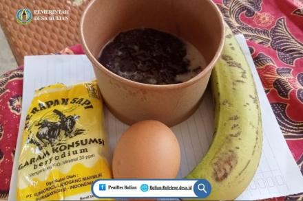 - pemberian makanan tambahan (PMT) berupa bubur injin, buah pisang, telur rebus, dan garam beryodiom