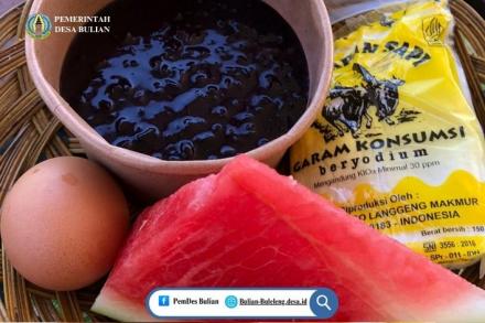 Momen yang selalu dinantikan oleh para balita adalah saat pembagian Makanan Tambahan (PMT). Dengan penuh kasih sayang, para kader telah menyiapkan PMT yang bergizi dan menarik. Menu kali ini menghadirkan bubur injin yang kaya akan serat, buah semangka, telur rebus sebagai sumber protein hewani berkualitas tinggi, dan tak lupa, garam beryodium yang esensial untuk perkembangan otak anak.