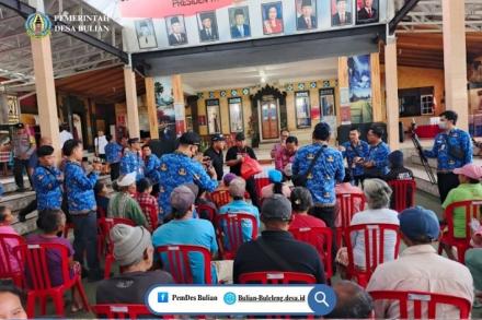 Kegiatan dimulai dengan penyerahan bantuan langsung kepada para lansia di Aula Kantor Perbekel Desa Bulian. Sebanyak 50 paket sembako diserahkan langsung oleh Bupati Sutjidra kepada para lansia yang membutuhkan. jPaket sembako ini merupakan bagian dari upaya Dinas Sosial Kabupaten Buleleng untuk meringankan beban ekonomi harian para lansia di Desa Bulian. Suasana haru dan syukur mewarnai penyerahan ini, di mana Bapak Bupati berkesempatan berinteraksi langsung dan mendengarkan aspirasi dari para penerima manfaat. Beliau menekankan bahwa bantuan ini adalah wujud nyata perhatian pemerintah daerah.