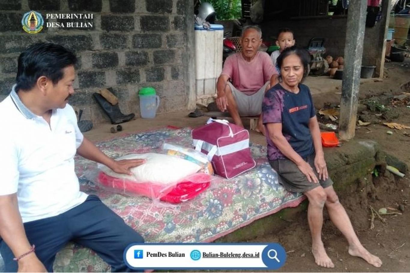 Dalam giat hari ini, Bapak Sekretaris Desa (Sekdes) Bulian turun langsung bersama tim administrasi desa untuk menemui korban di kediamannya. Bantuan yang diserahkan berasal dari Badan Penanggulangan Bencana Daerah (BPBD) Kabupaten Buleleng, yang difasilitasi melalui jalur pelaporan Pemerintah Desa.